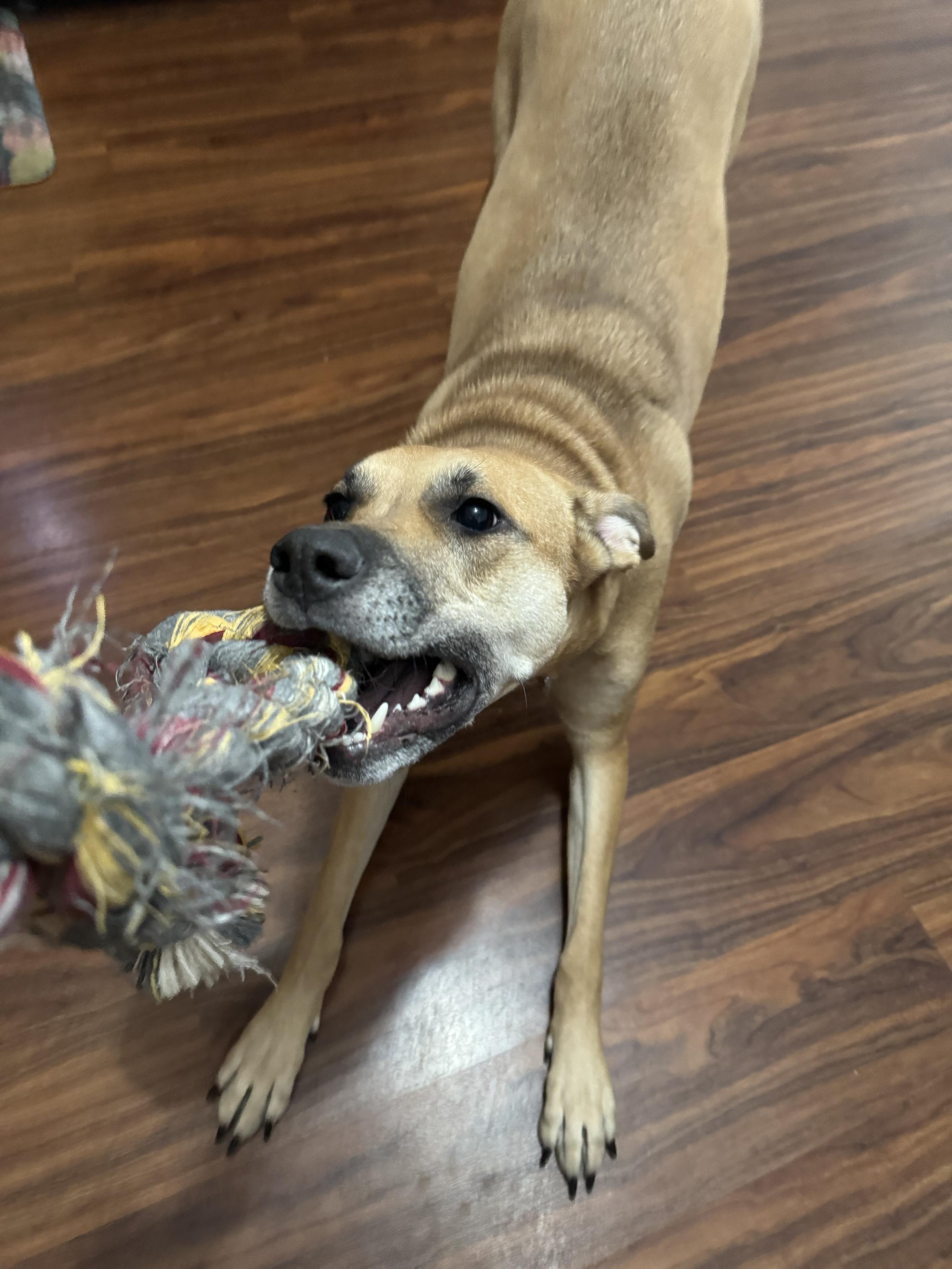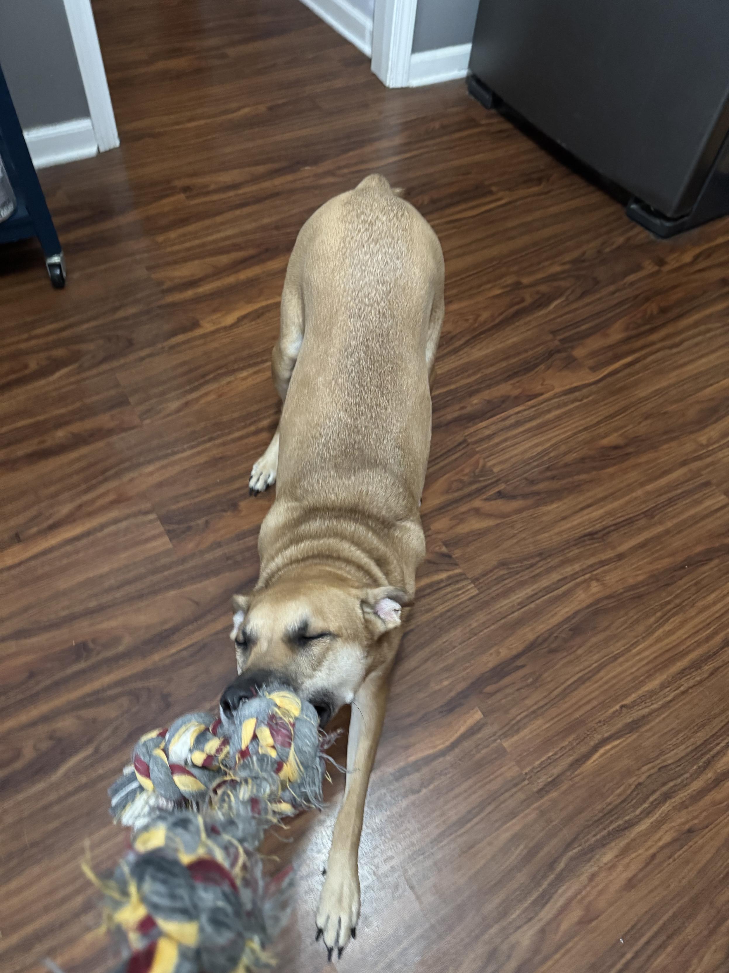 When you play rope with a dog and they go play pose. Like if you agree.